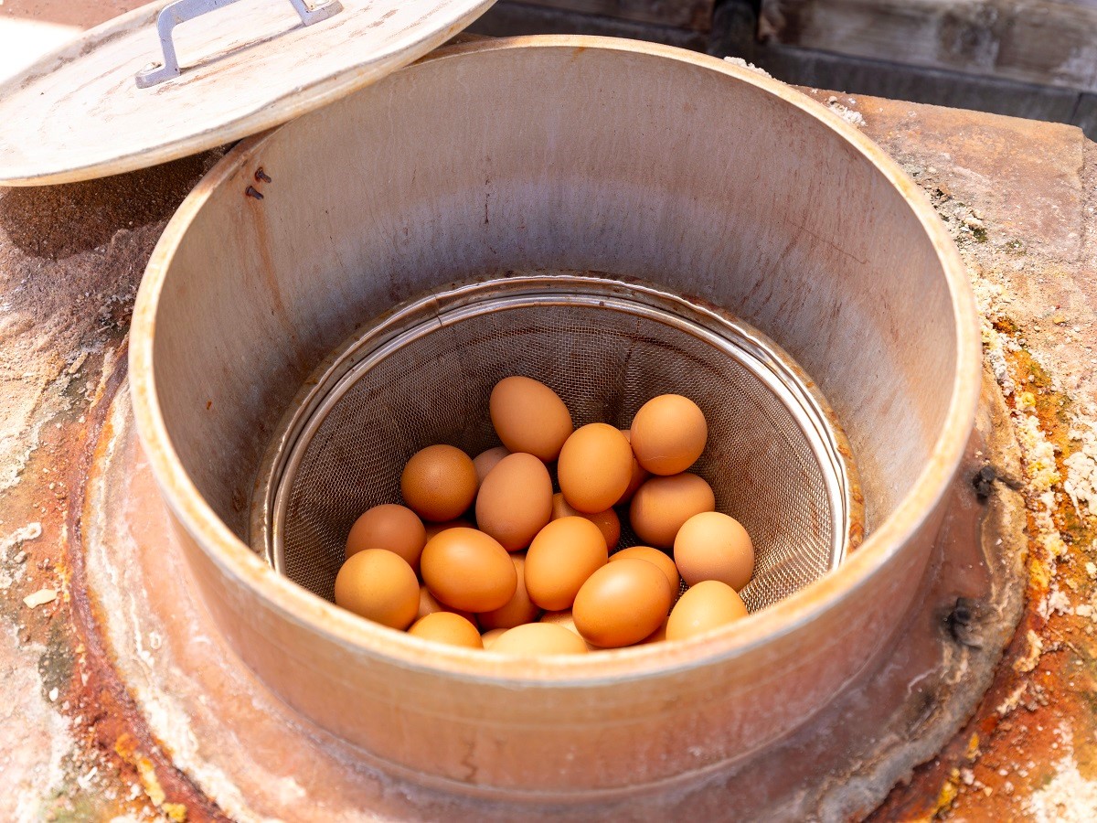 温泉の蒸気で蒸した地獄蒸しのゆで卵