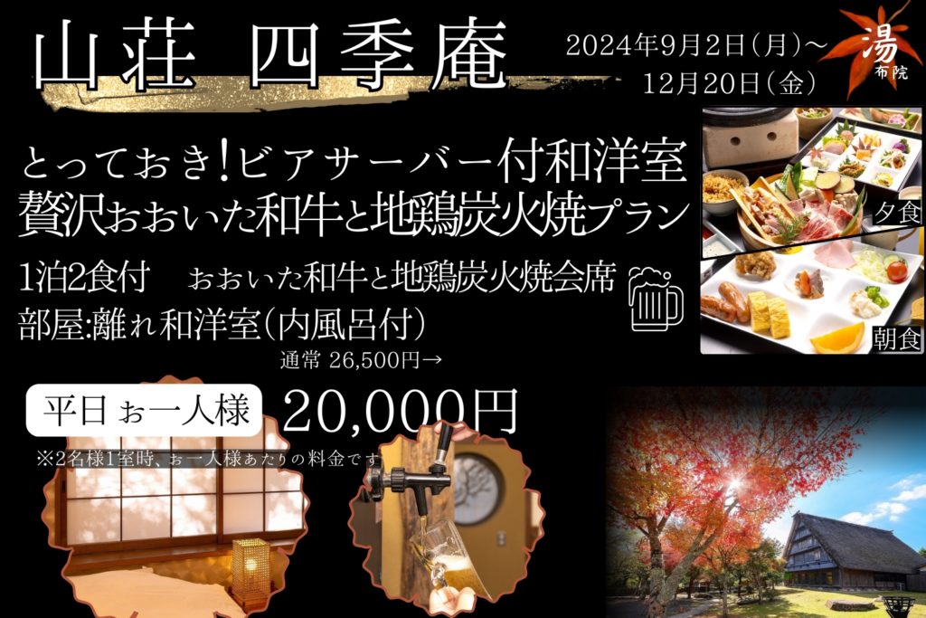 「山荘四季庵」公式HPだけのお得プランのご紹介