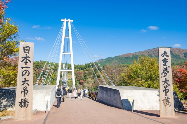 九重連山や美しい渓谷を一望できる絶好のロケーションにあり、特に紅葉の季節や新緑の時期には多くの観光客が訪れます。橋の中央からは、「鳴子川渓谷」や「震動の滝」などの自然の景観を楽しむことができ、四季折々の景色を堪能できるスポットとして人気です。